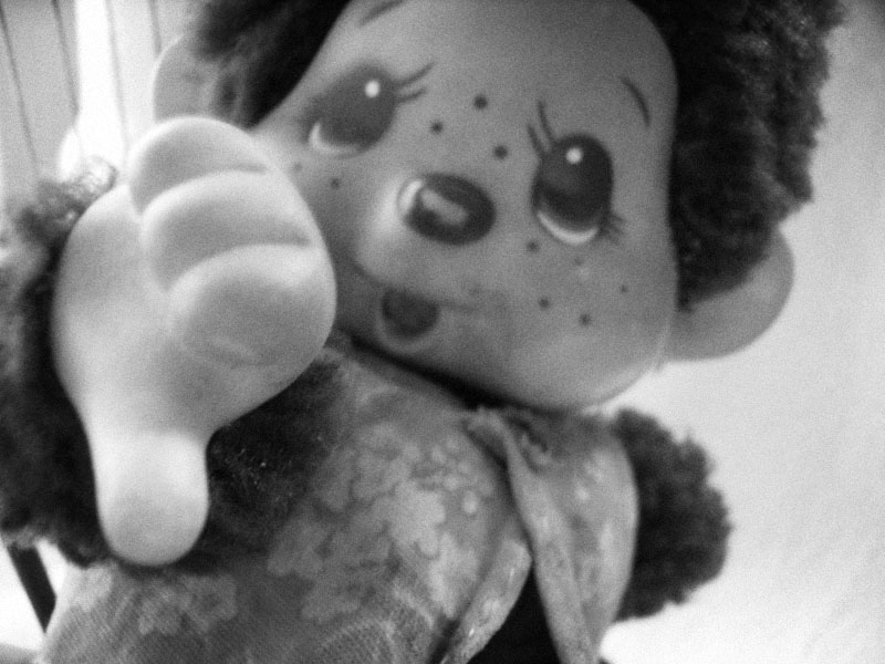 「モノトーンモンチッチ」。モンチッチくんは黒の毛並み、モンチッチちゃんはホワイトの毛並みだそうです。ちなみに二人は2004年1月(生誕30周年)に結婚してます。 できちゃった婚?みたいです。